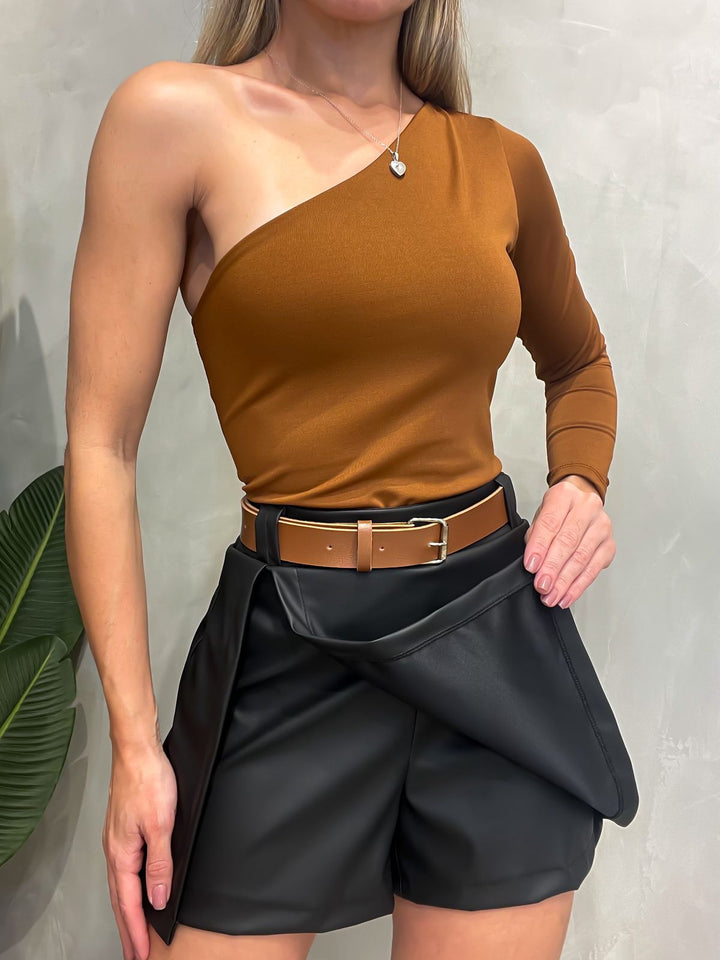 O grande diferencial do Body Feminino está na sua modelagem de uma manga só, que cria um visual assimétrico único, transmitindo elegância e ousadia na medida certa. Essa característica destaca o ombro e alonga a silhueta, proporcionando um caimento que valoriza o corpo e realça as curvas femininas.
